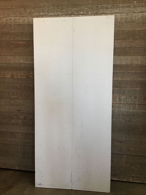 36" hollow core bi-fold with a modern panel design. Could use a fresh coat of paint otherwise in good used condition.