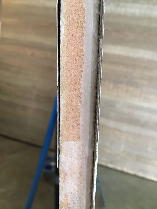 New, 1/2" 4'x8' fire rated MDF sheet, white laminate on one side and "neutral twill" laminate on the other.