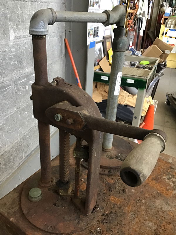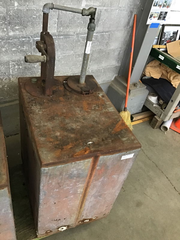 Vintage steel service station oil pump. the pump is siezed up but makes for a great auto shop decor piece