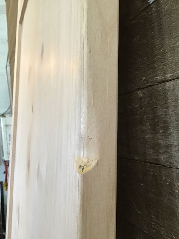 Never installed, oversized 32" shaker style knotty alder interior door with no hinge cuts. Has some minor cosmetic damage and a dent one one side of the door (pictured) otherwise in good sturdy condition!