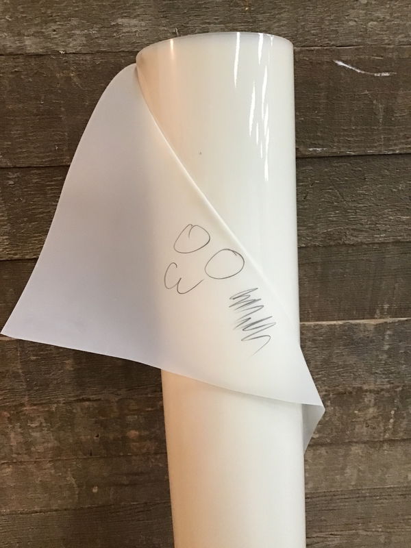 Unknown length but it's a lot of film. This thing is big enough to draft an entire organ on it. Only one side white and .003" thick. Will take graphite really well. Interesting material with many applications, would make a great material for people who work in graphite a lot.
