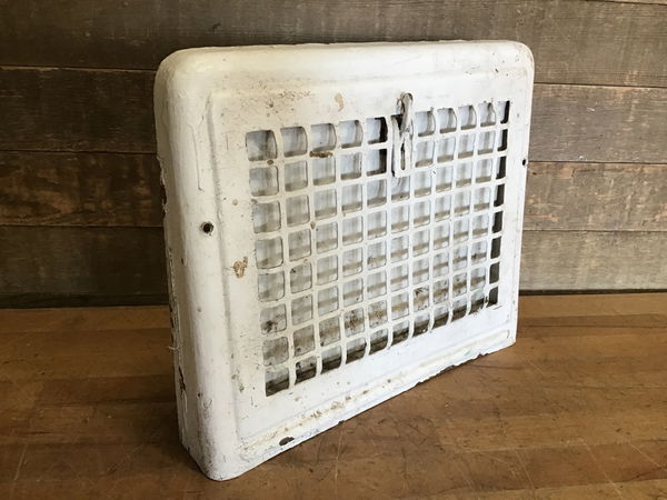 Vintage steel heating great in good, used condition. Has been heavily painted white and there is some minor surface rust. Should clean up easy though and the flap moves as it should.