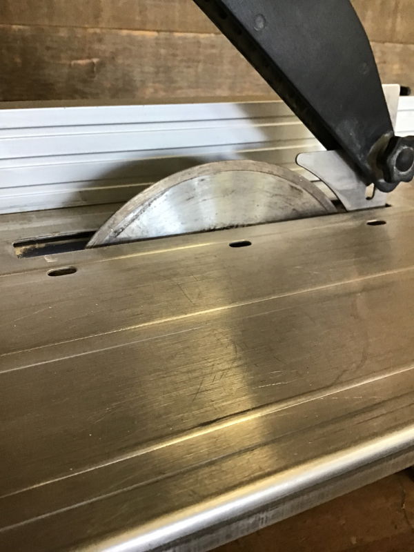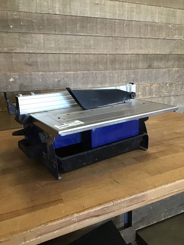 Mini wet saw table with a 7" blade. Not tested with water but blade runs fine.