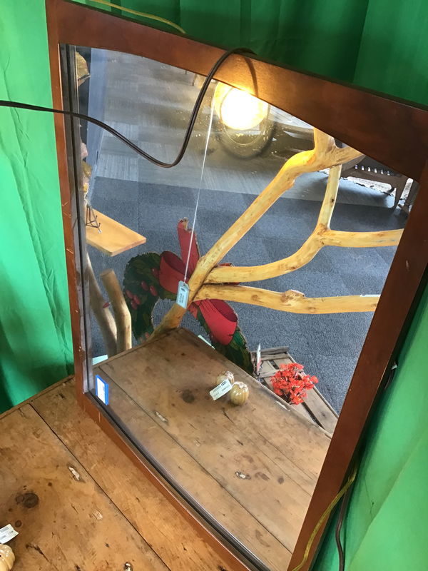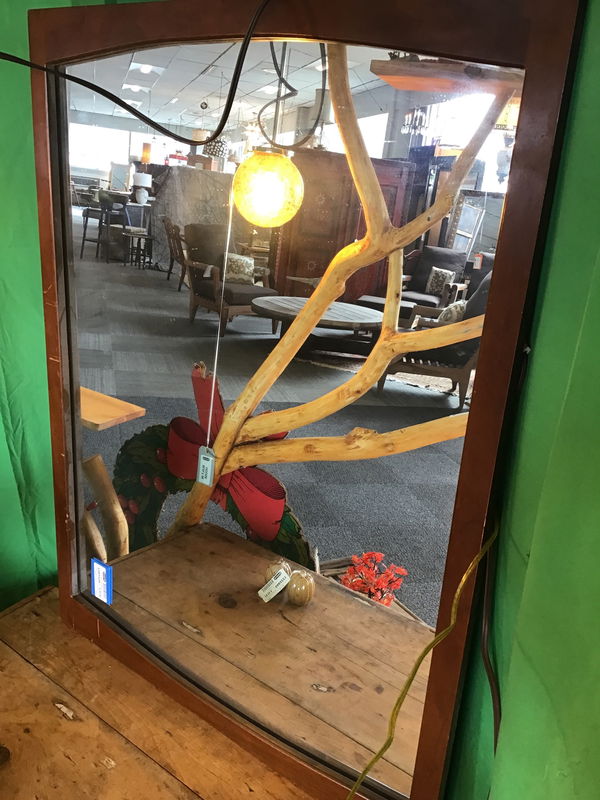 Sturdy and hefty wood framed mirror. Seems to be solid wood as it's quite heavy. Nice beveled edges on the sides of the frame and seems like just a solid mirror.
