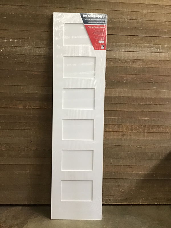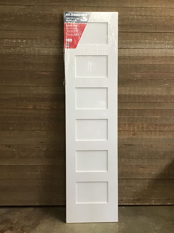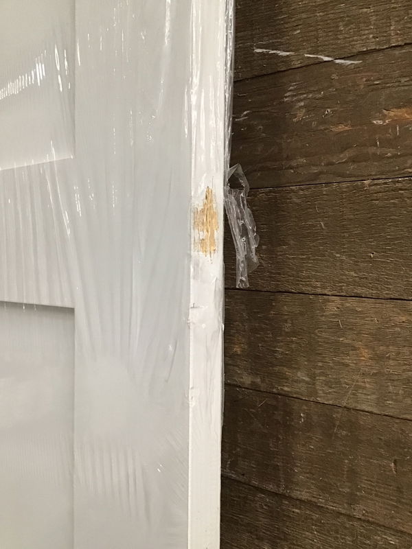 Shaker style primed MDF overheight door. Never installed and still in wrapping. Unfortunately has a small gash on the side of a stile. Will be highlighted in photos.