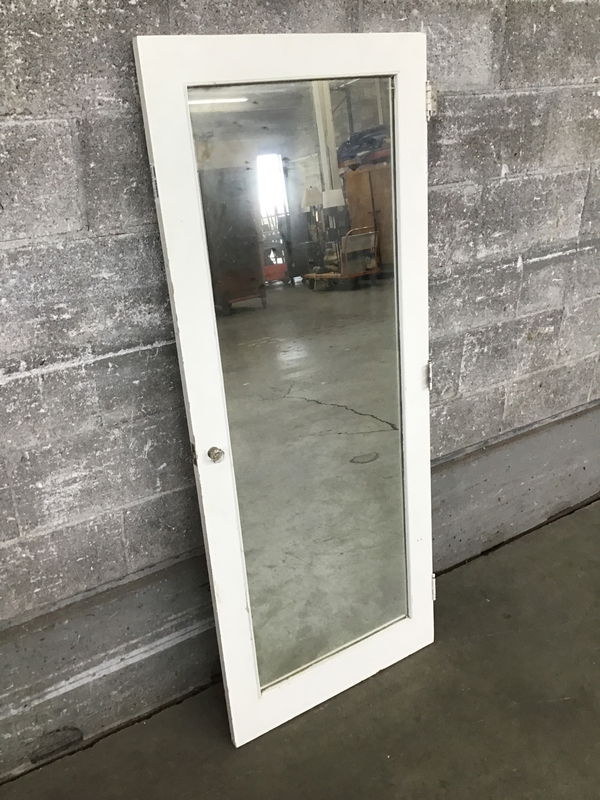 Vintage mirrored door that looks like it originally went to a large cabinet or small pantry. Has a cleat on the back which probably means this was installed in a more decorative sense.