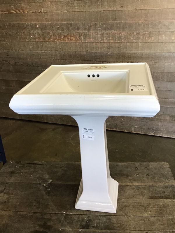 Kohler Memoirs pedestal sink. Has some minor blemishes and some crazing in the finish.