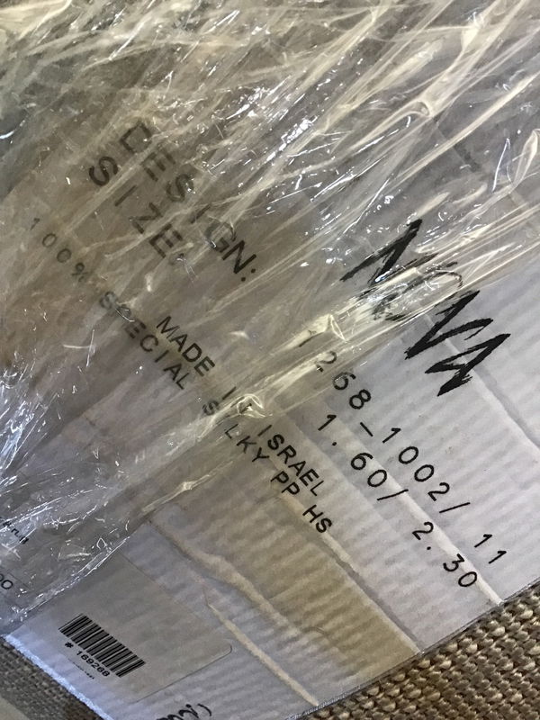 Beautiful geometric rug from the "nova" collection. Hexagonal patterns throughout in a dark grey against a lighter grey. Says 100% "special silky" whatever that may mean. Nice rug!