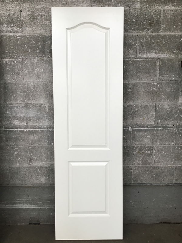Cathedral style, faux two raised panel solid core door. Although these doors are exterior thickness, their masonite skin is not intended for the elements.