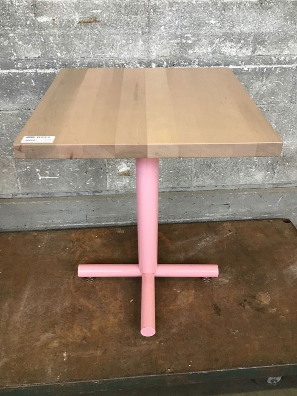 Hi Barbie! Turn your home into a Dreamhouse with this fancy cafe table from Grand Rapids Chair Co., with a maple butcher block tabletop and custom pink finish on the tube steel base. These go for upwards of $550 new.This is a bulk item; photo is representational, no holds please.