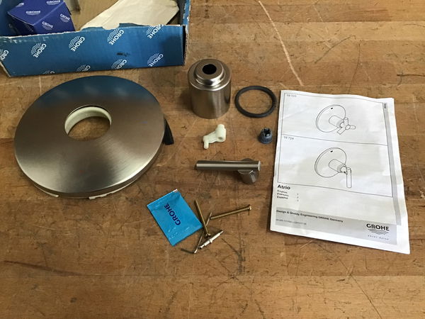 Pressure balance valve trim by Grohe, the discontinued Atrio series. Came to us new in open box, and is complete with instructions. First photo is representational and shows a different finish.