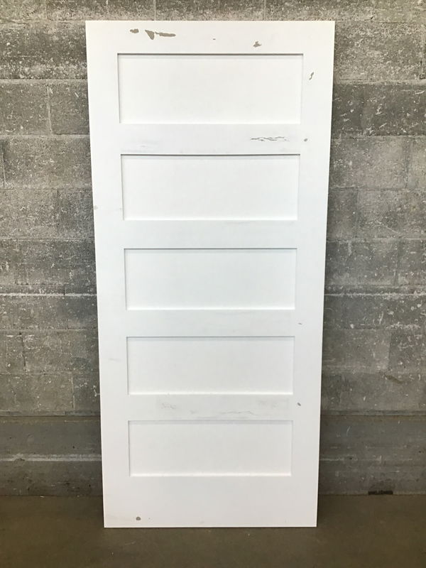 Undrilled, primed masonite,Shaker style five panel door. Item may have cosmetic damage.