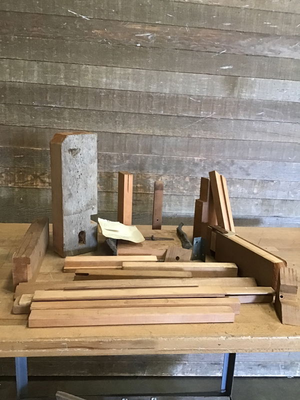 A box of vintage wood forms and jigs with a variety of lumber types and sizes, likely originally used for sewing tables in the machine room in the original Willits Brothers Shop! This comes from Tacoma's own Willits Brothers Canoe Co. Makers of a highly sought after "double planked" canoe design that was constructed until the mid 60s. Very cool piece of Pierce County industrial, and canoe building history. Now ready to help bend some wood planks or even composite decking material. Learn more about it here! Please note that several Willits experts reviewed the material as items from the workshop that were not critical to telling the story of the Willits Brothers (hence why we have it and not the museum). Most of their collection is in the museum's property now.