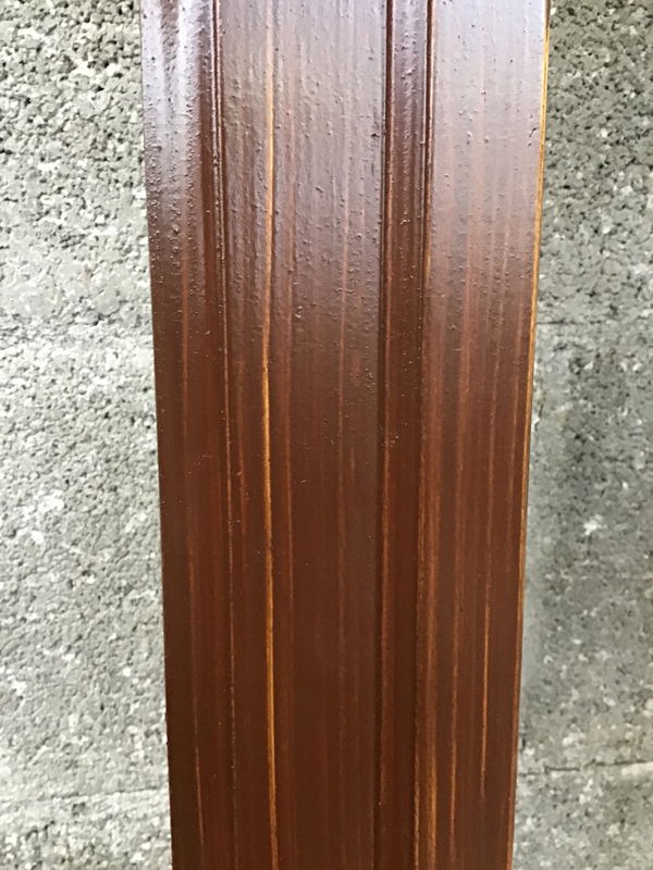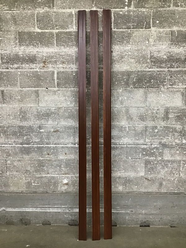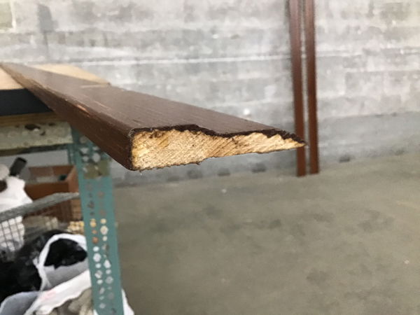 8' length of dark brown gel stained hemlock casing. Actual thickness looks like 9/16". Item may have cosmetic damage. Photo may be representational. This is a bulk item. No holds please.