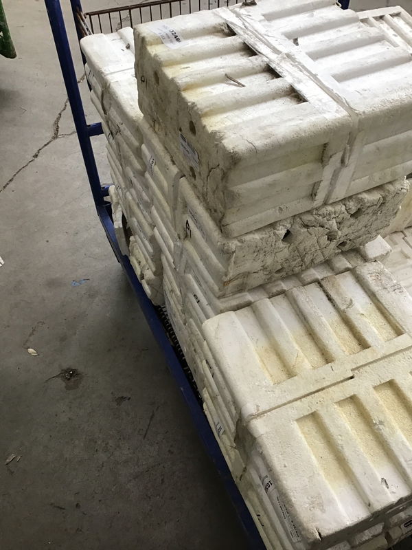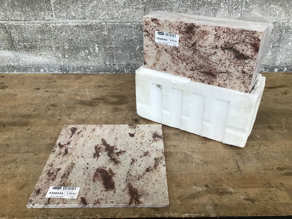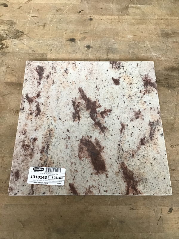 Box of ten tiles of "PL" labeled ?plum colored? granite tile.