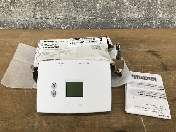 Honeywell PRO 1000 non programmable thermostat, Model TH1110DH1003 that looks to start at around $35 when found online.