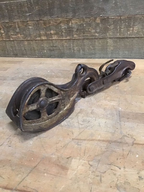 Rusty ol' vintage block and tackle pulley, still spinnin' beautifully. While maybe not useful for it's original purpose, it would make for some gorgeous yard or barn decor now!