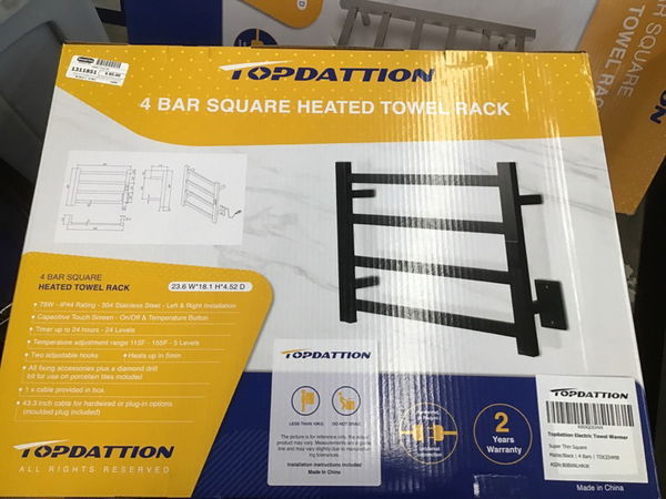 Brand new Topdattion 4-bar heated towel rack in a matte black finish. See it retailing for around $140.