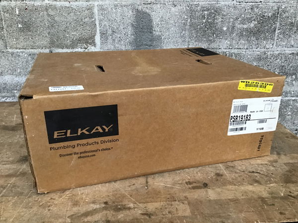 New in-box Elkay stainless sink from their "Celebrity" line. Model PSR19183. Three holes for faucet and handles, 8" centers.