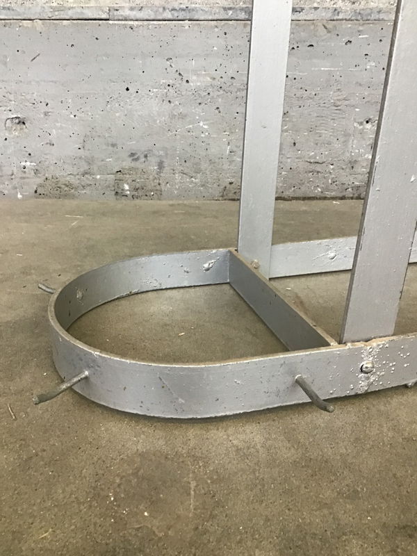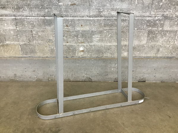 This beeeeeeeeefy steel pot rack was salvaged from a local elementary school and includes 16 minimalist hooks, perfect for hanging all of your pots, pans, and a few utensils. The rack hangs from two arms spaced 33.5" apart on center.