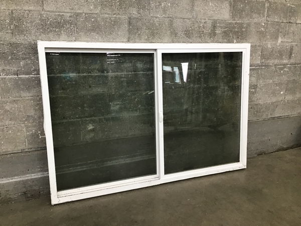 JeldWen white vinyl sliding window that wasn't taken out super clean. The nailing flange and a little of the edge of frame was rotozipped or sawzalled off here and there. Price reflects..