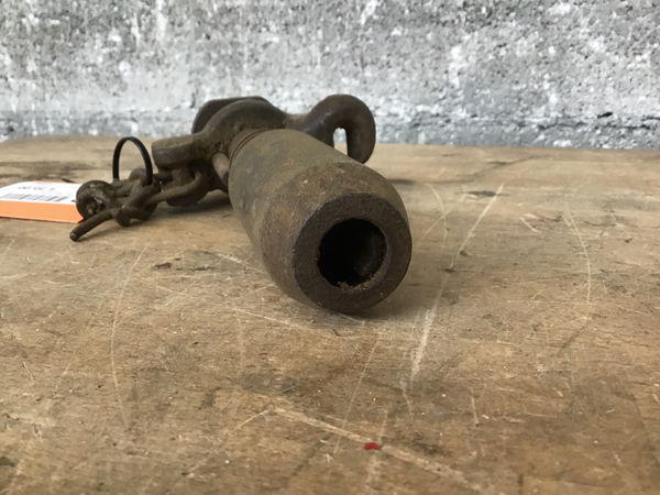 I asked a coworker what they thought this brace attachment was for, and we came up with it being used as an extractor since it looks like it might have had a chain attached to secure it while you crank the brace. An oddity for the tool shelf, for sure. I couldn't find a maker's name on it.