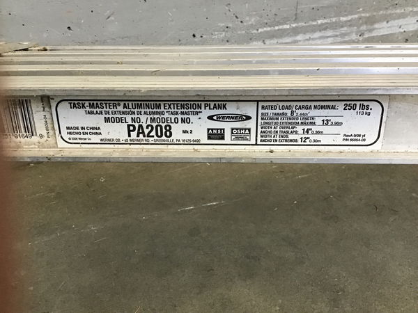 USE AT YOUR OWN RISK! Werner PA208 Aluminum Extension Plank that can telescope out to 13' (156") maximum. Sells for $349 at HD. Photo may be representational.