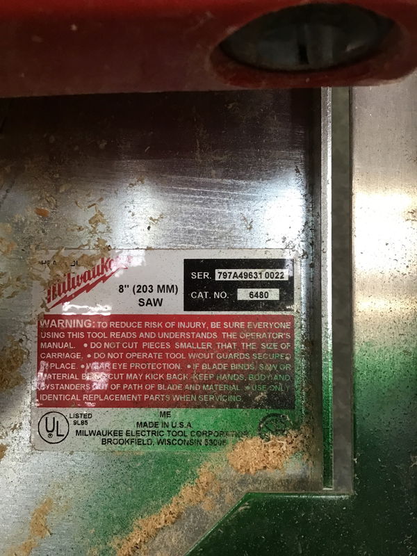 This is a Milwaukee brand panel saw with an 8" saw. When tested, the saw powered on with zero issues and ran just fine. Tension cable operated smoothly as well. These go for around $2,200 new.