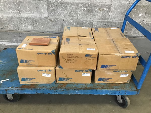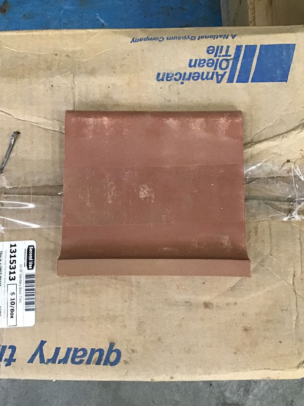 Sanitary base tiles from American Olean Tile Co. in their color "Canyon Red." 1 box contains 11 SF of 6 x 5.5 tiles to be placed where the wall meets the floor. This is a bulk item, no holds please.