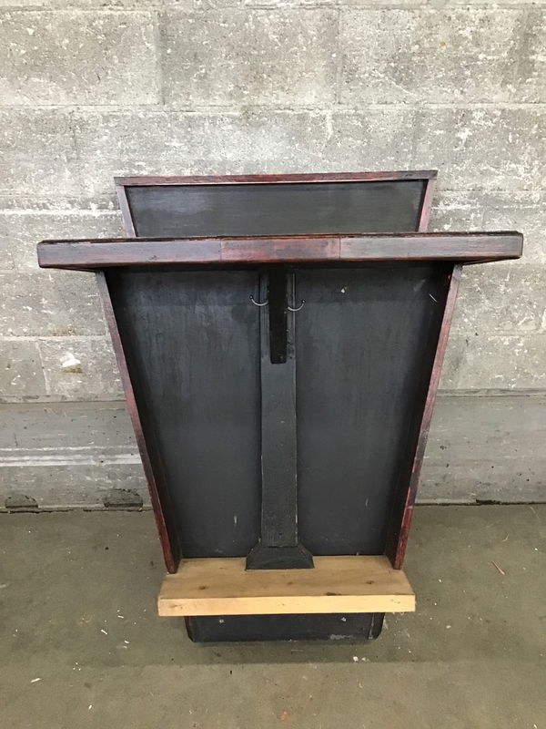 Oh holy coffee table, robust be your name! We aren't exactly sure what this is but it came from a church of some denomination, and was recently used as a cafe side table. It has a sleek deco look to it and would look at home anywhere with an appreciation of 1920's sensibilities.