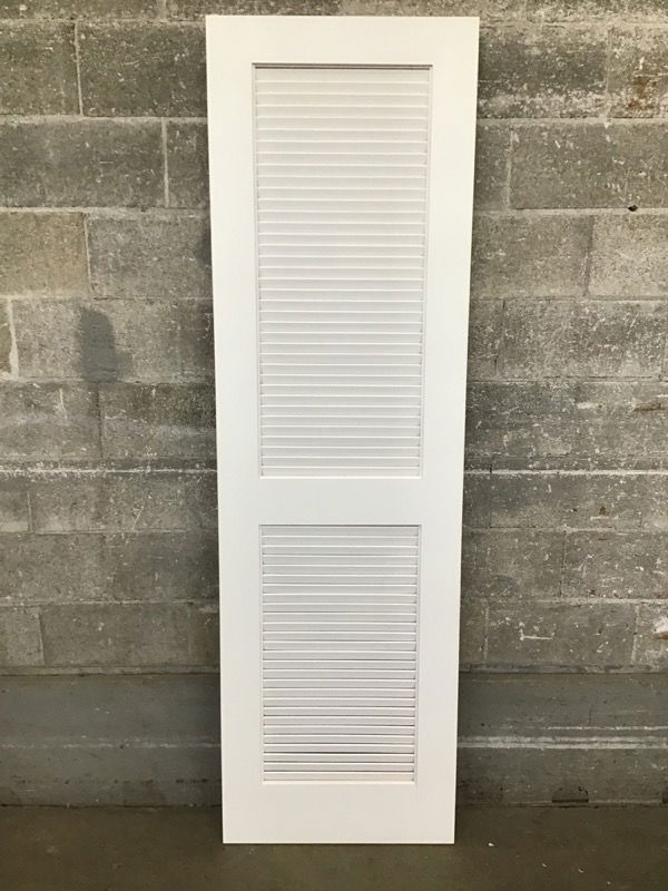 Undrilled, primed louvered door that's never been installed. Item may have cosmetic damage. Photo may be representational.