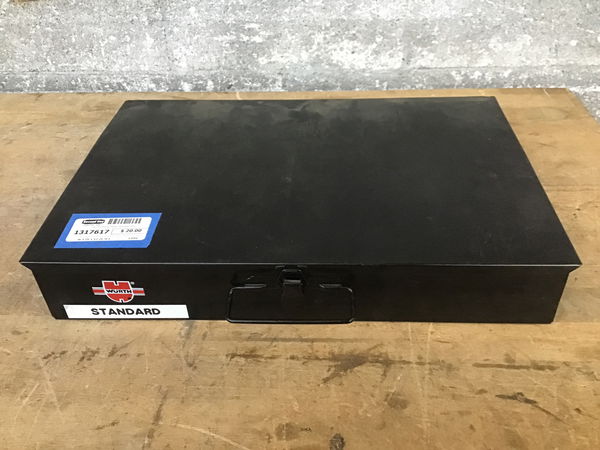 A black metal storage box by Wurth. Would be good to store anything you could fit inside of it.