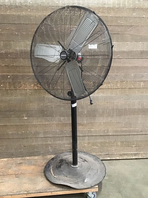 Free standing warehouse fan with 3 speed settings. Moves quite a bit of air. Each blade is about 12' length. Could be great for clearing air through a workshop or shed as a cheap method of keeping the air clear while sanding or cutting.