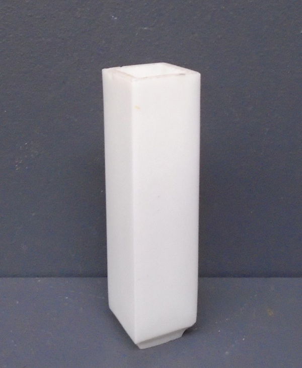 A candle shaped glass sleeve in a square Mission stye that would have covered the valve of a gas lamp from the 1880s-1920s to make them appear more attractive.