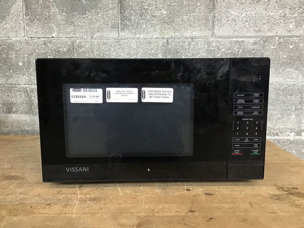 2021 Vissani microwave in good shape. Tested in-house and appeared functional.