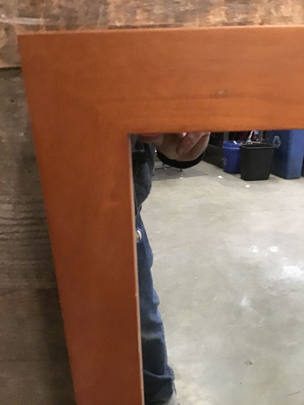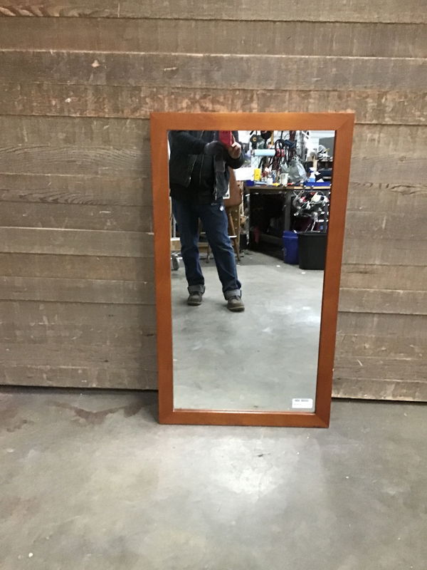Well made mirror with a solid Mahogany wood frame and a mounting bracket. Looks to be in great condition and would look great in an entryway or bedroom!