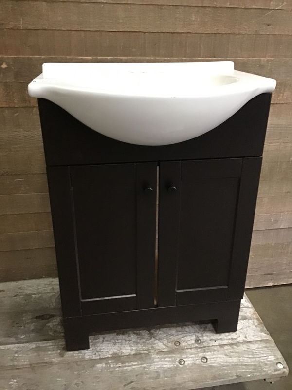 Comes with matching sink. Sink is not attached or glued down to base. Has some slight moisture exposure at the base so one of the sides has some of that classic particle board moisture exposure texture. Previously installed.