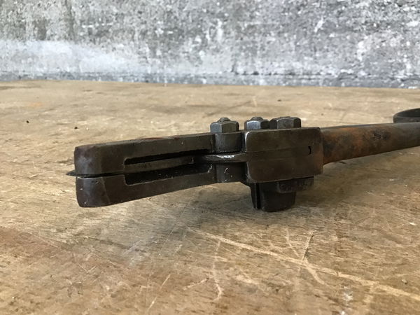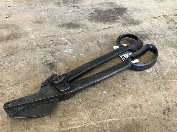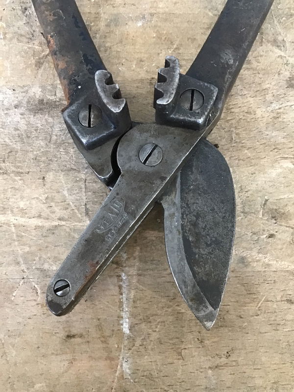 This is an antique pair of Pexto No.2 Tin Snips with a crimping attachment for stove pipes.