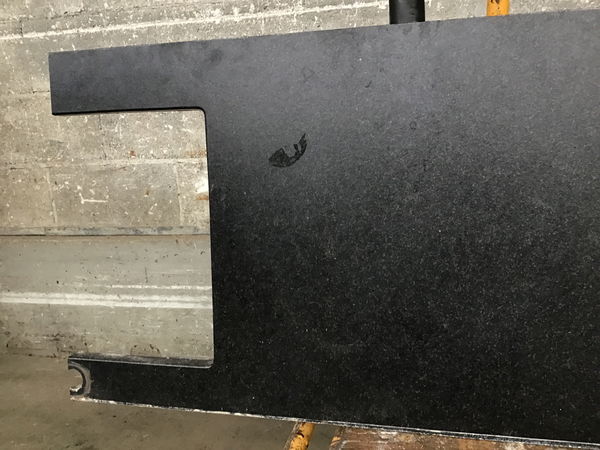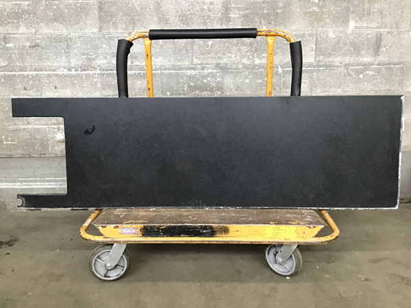 Attractive "dark black pepper" (by description, not the factory's) man made vanity depth countertop with finished front edge. Length listed is to the start of the sink cutout. Length for transport is 78 3/8".