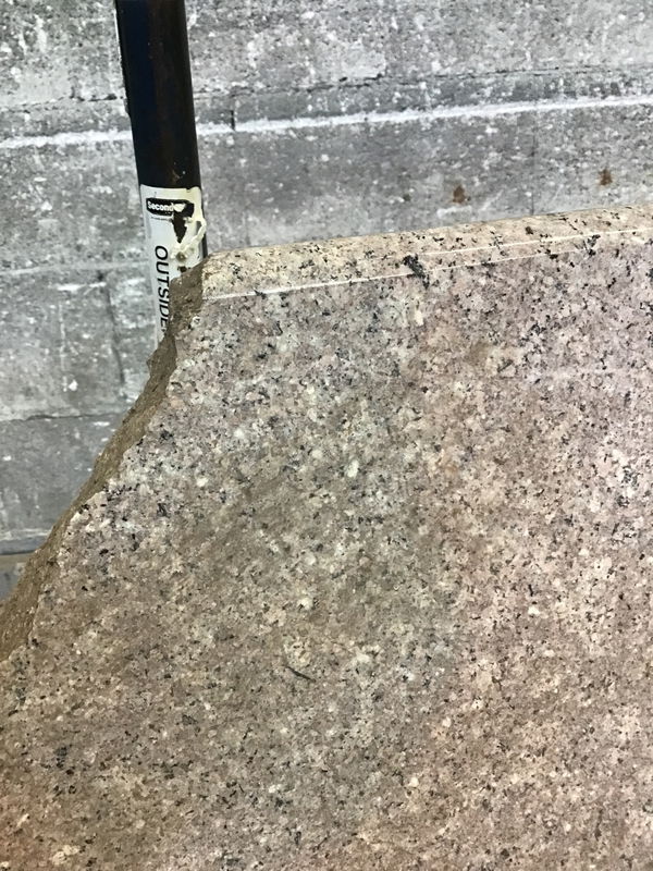 Granite countertop, bullnose finish along the long edge, broken off area not included in measurements.