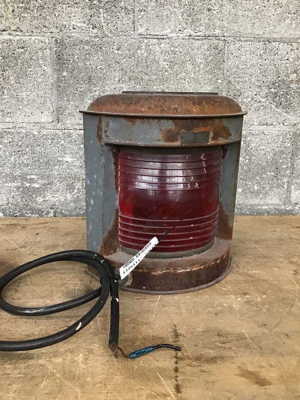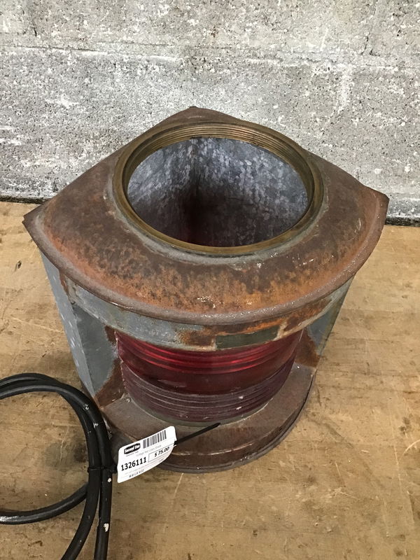 Very cool vintage red glass marine light housing, looks like it has the potential to be rewired and turned into a household light of some sort.