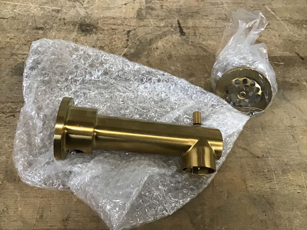 A gold tub spout by Moen, from their Align line, model no. T2193EPBG, though it doesn't come with the other trim parts.