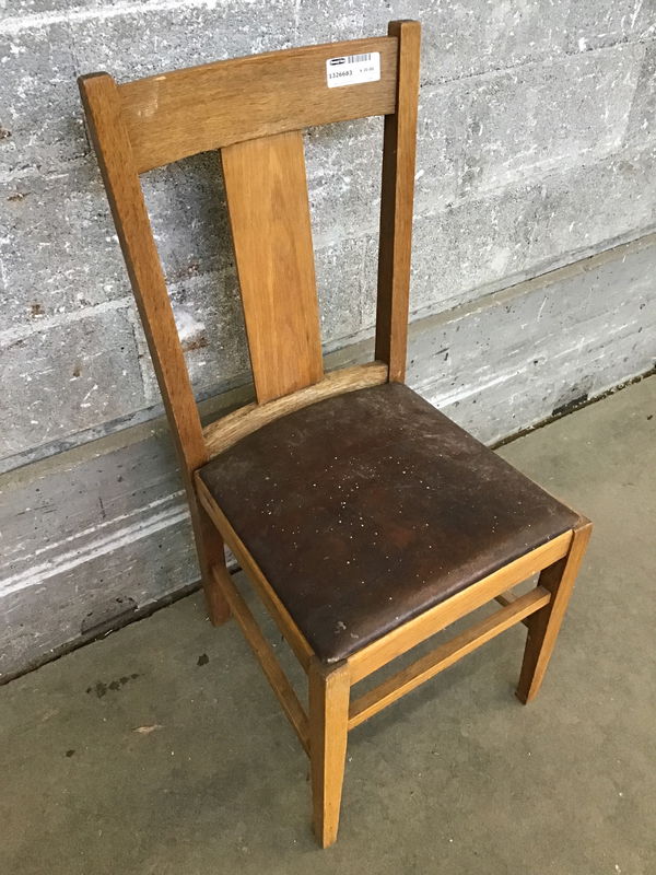 Vintage Oak dining chair with a leather seat. Needs a cleaning but it's in good enough shape otherwise.
