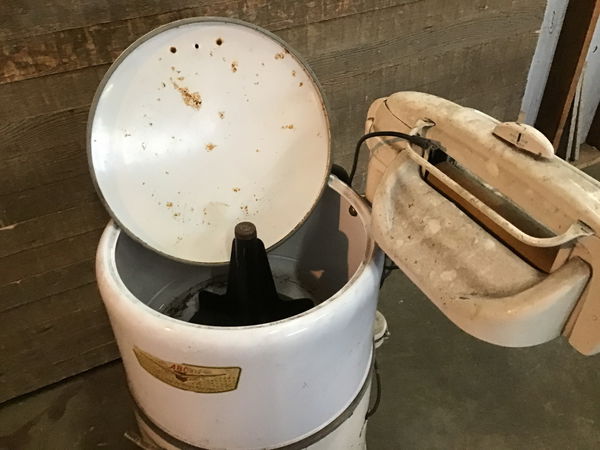 Step back in time with this Wringer Washer washing machine by the Altorfer Bros. Untested and unusable as a washing machine, this would make an interesting and fun piece of yard art! Measurements are approximate.