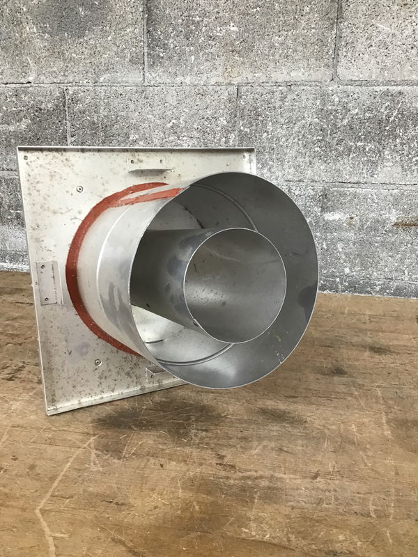 A shiney solid metal venting cap for your ducting duties. Inside connecting piece measures around 8" in length and width.