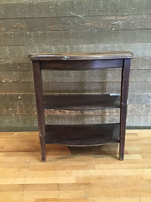 Super cute smaller antique end or side table with two shelves beneath the top. Made of oak and in project or rustic condition. Top front section comes completely out, could be used as is or restored and glued tastefully. Still super cute.