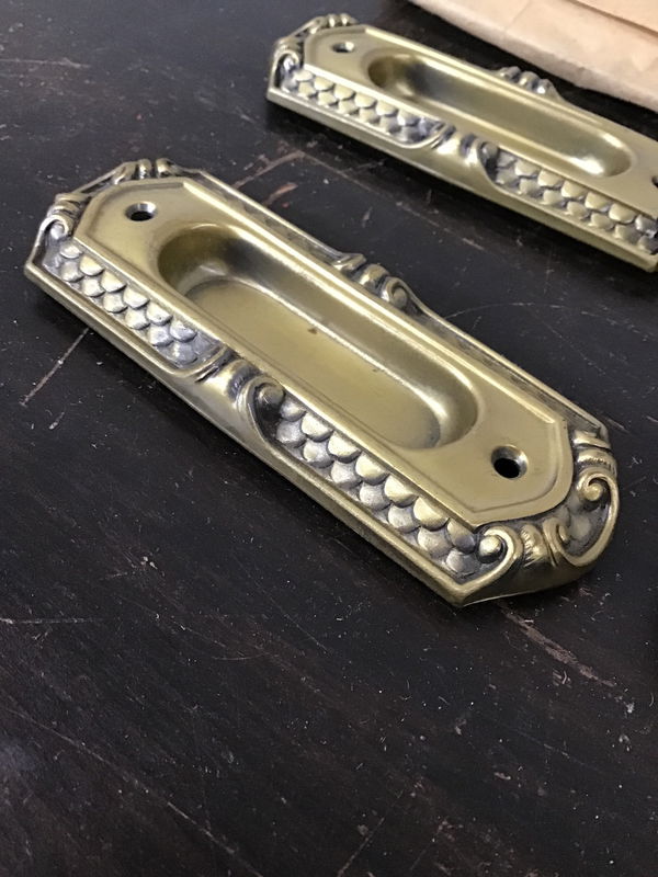 These lovely recessed drawer pulls have a nautical theme with the look of scales in the background, and big rolling waves on the cardinal points.