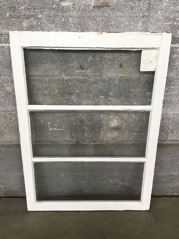 Vintage 3 lite wood window sash that its pretty heavily painted, but other wise in good condition. Had cuts on the sides for hardware.