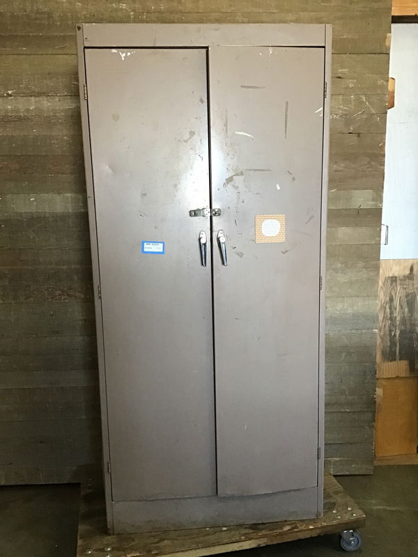 Vintage steel utility cabinet, medium gauge steel, with some wear and tear.