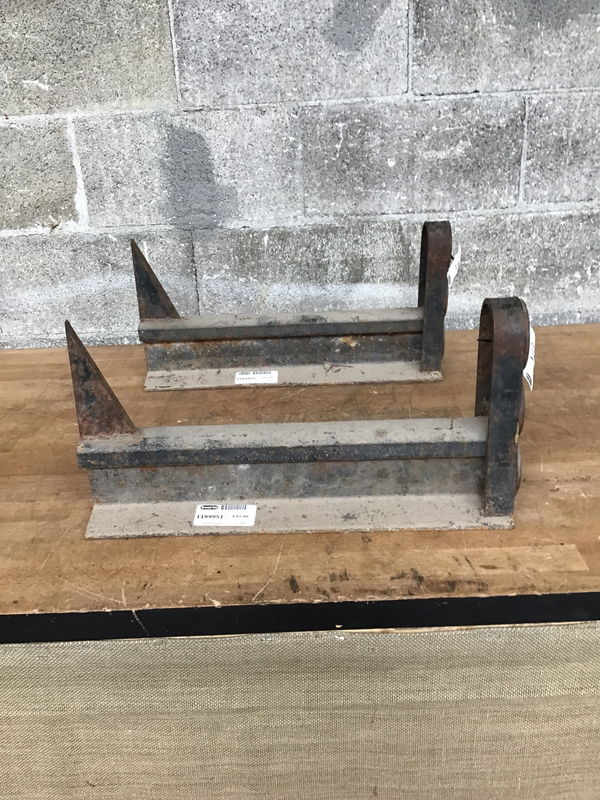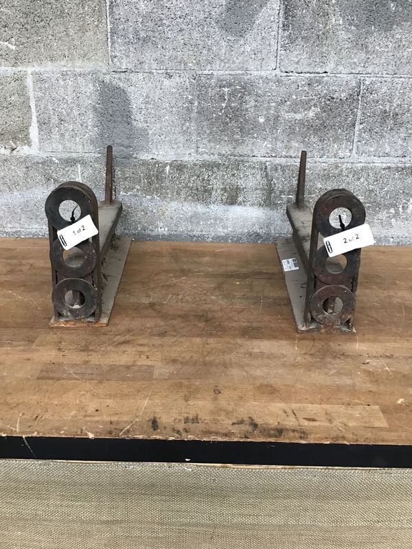 Really gorgeous pair of custom forged andirons. It may not be the season for hearth use, but maybe you're building an outside fire pit this summer?